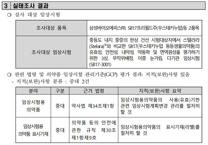 (품목) 삼성바이오에피스㈜, SB17프리필드주(우스테키누맙)등 2품목-의뢰자