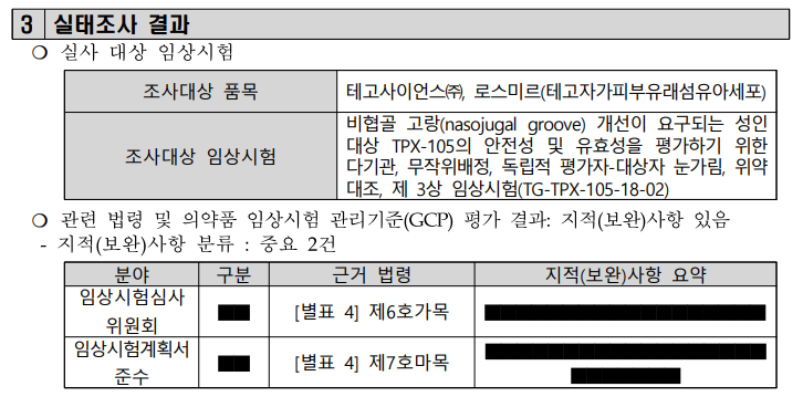 2024.05.29 - [식약처 정보공개/행정처분] - 20240527_임상시험계획서 변경승인 미준수의 건