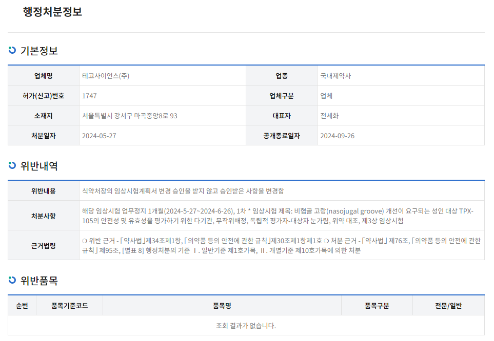 '식약처 정보공개 > 행정처분' 카테고리의 다른 글
